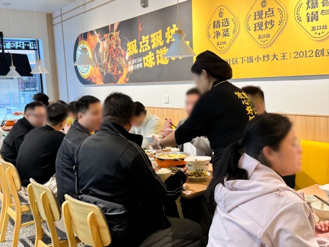 這些成績得益于其追求極致性價比的定位。具體來看,五口灶聚焦社區客群,定位更接近平價社區食堂,但食堂只聚焦快餐場景,而五口灶的打法是用快餐的價格,做正餐的體驗。